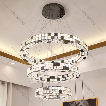 Anneau de luxe moderne pour villa hôtel, lumière en cristal suspendue pour escaliers, cercle, salon, maison, grands lustres à led